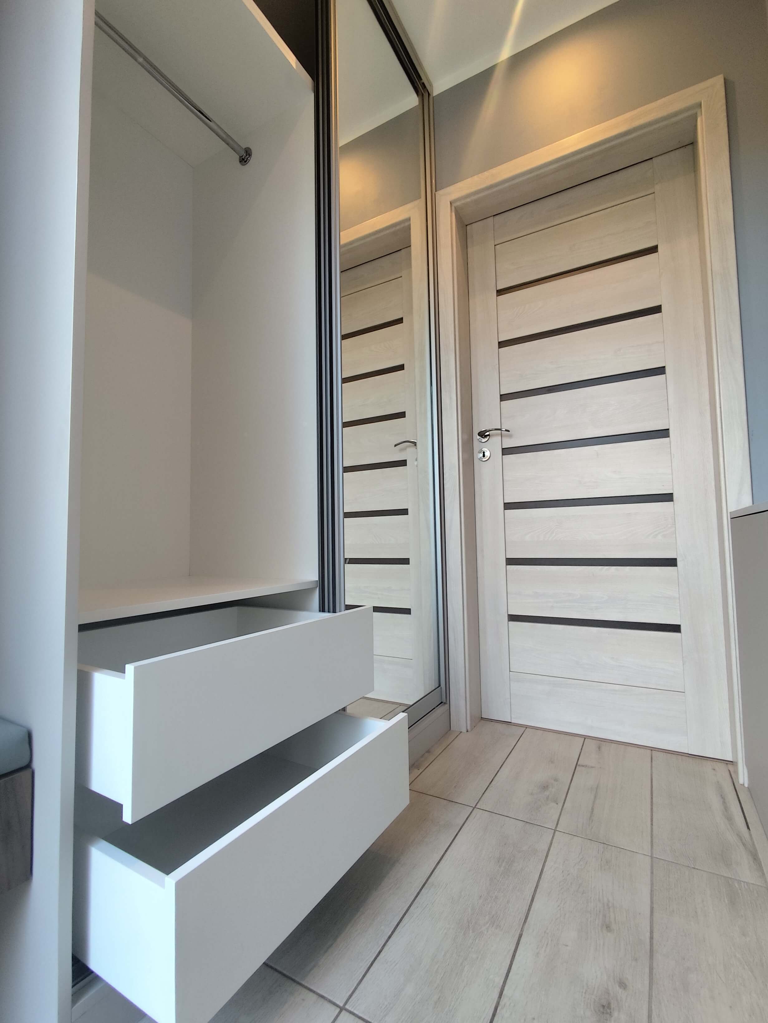 Tworzymy szafy na wymiar we Wrocławiu i okolicy, które wykorzystują potencjał przestrzeni: od podłogi, aż po sufit. Dopasowujemy rozmiar, styl, materiały, kolor czy nawet liczbę półek i szuflad, do potrzeb naszych klientów. Wykonujemy m.in.: szafy wnękowe na wymiar, szafy do sypialni czy funkcjonalne szafy do przedpokoju. W Dobrym Wymiarze otrzymujesz szafy na wymiar, które budują porządek i harmonię poprzez doskonałą ergonomię oraz estetykę.