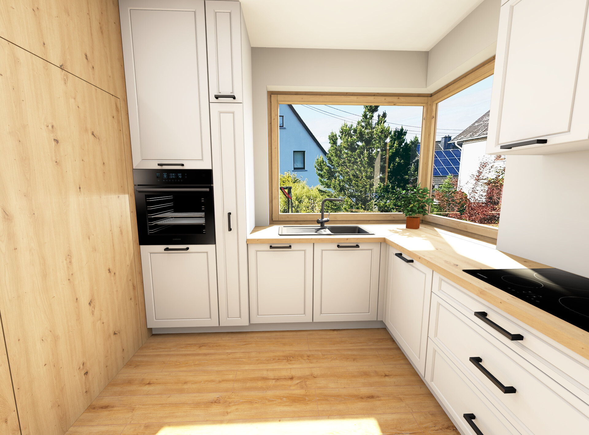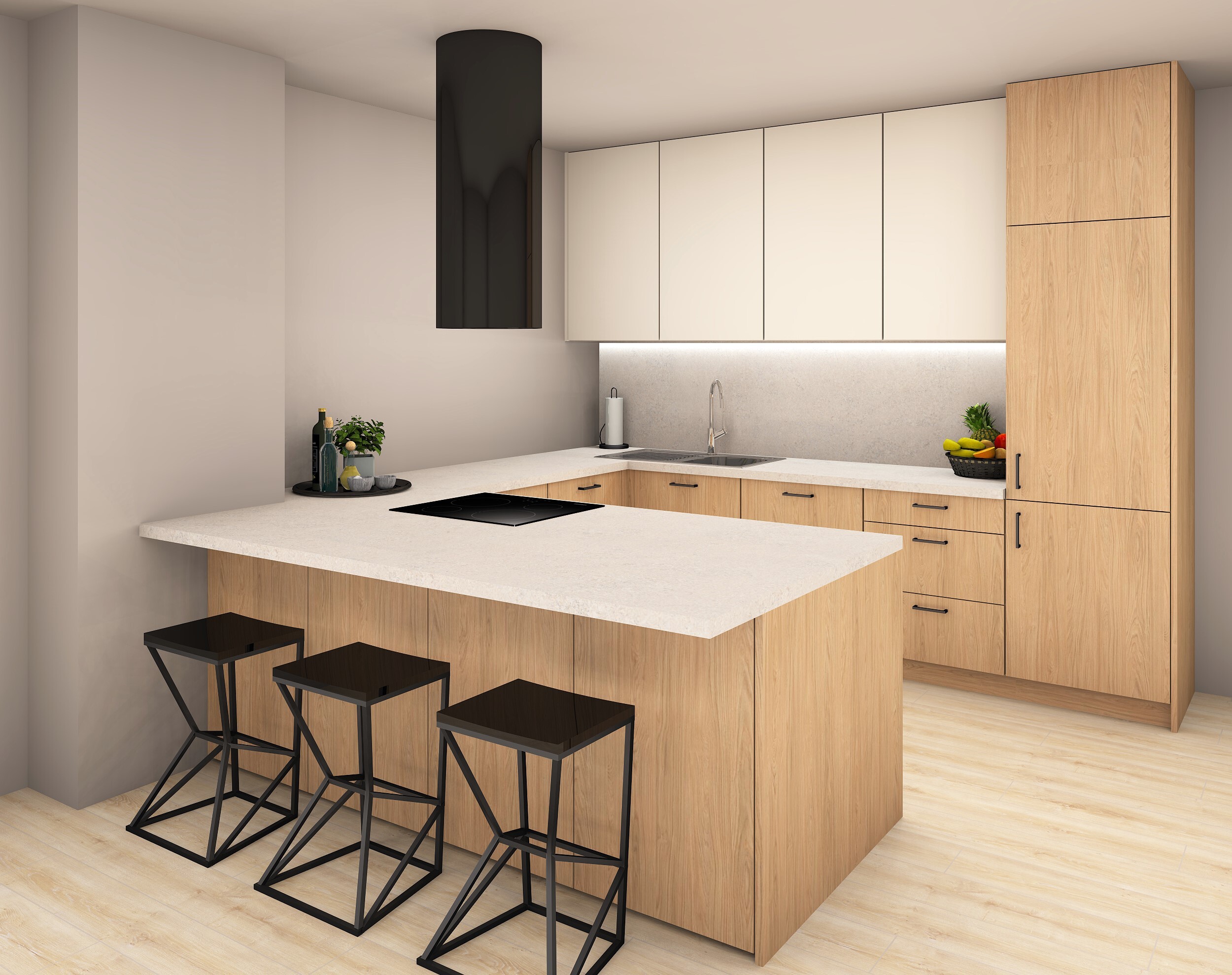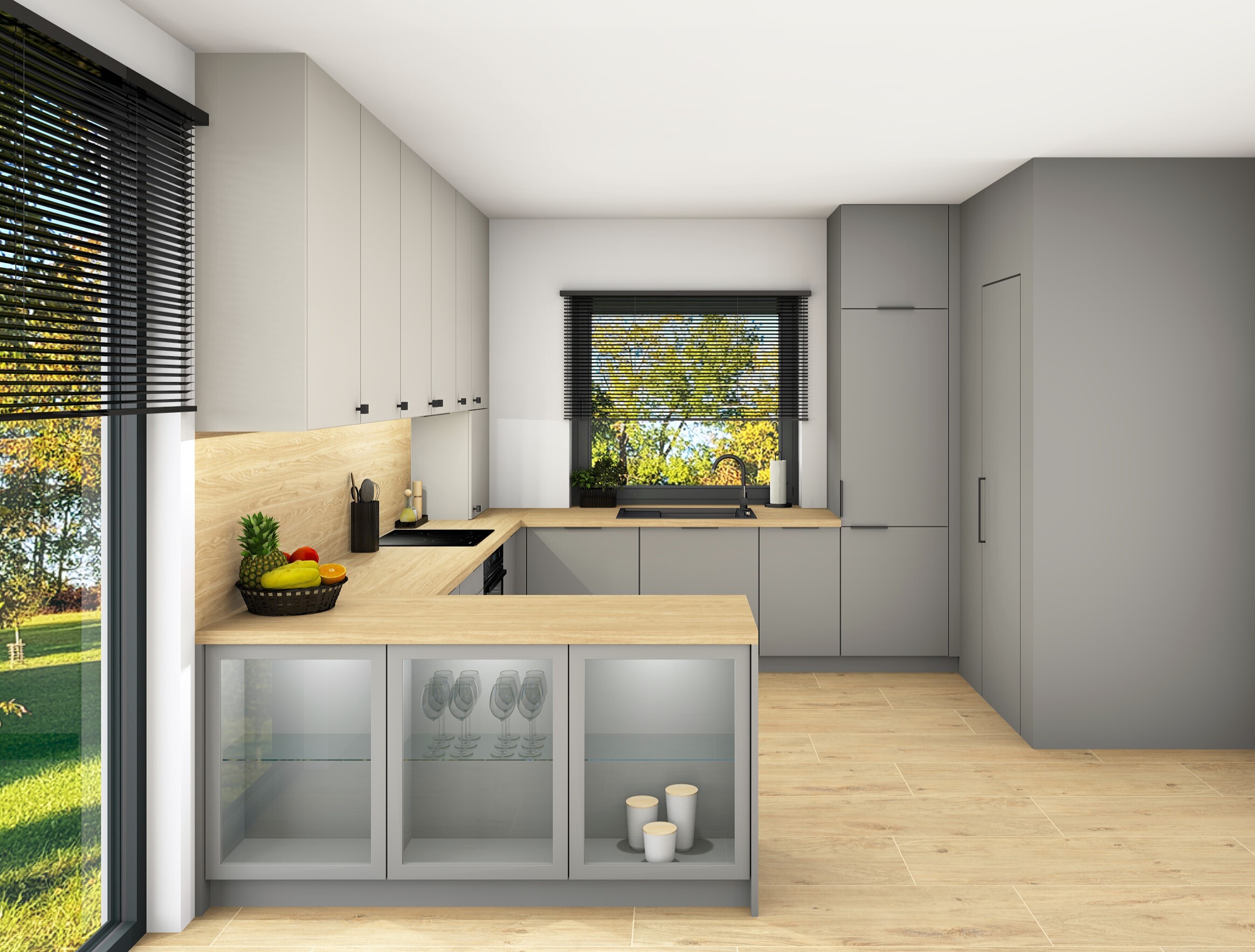 Wizualizacje pozwalają nam wyłapać ewentualne kolizje szafek, błędy ergonomiczne czy niewygodne ustawienia sprzętów.