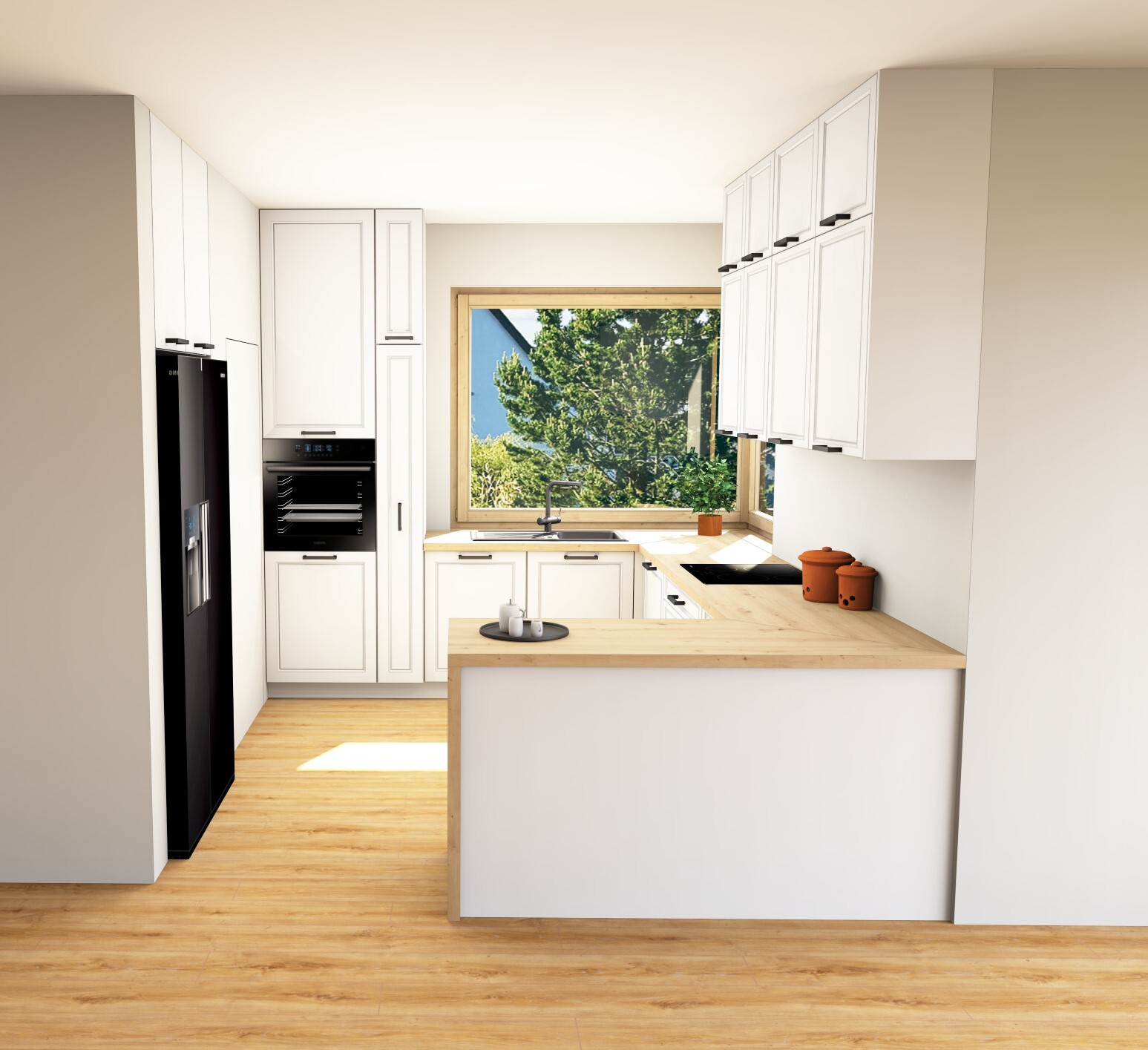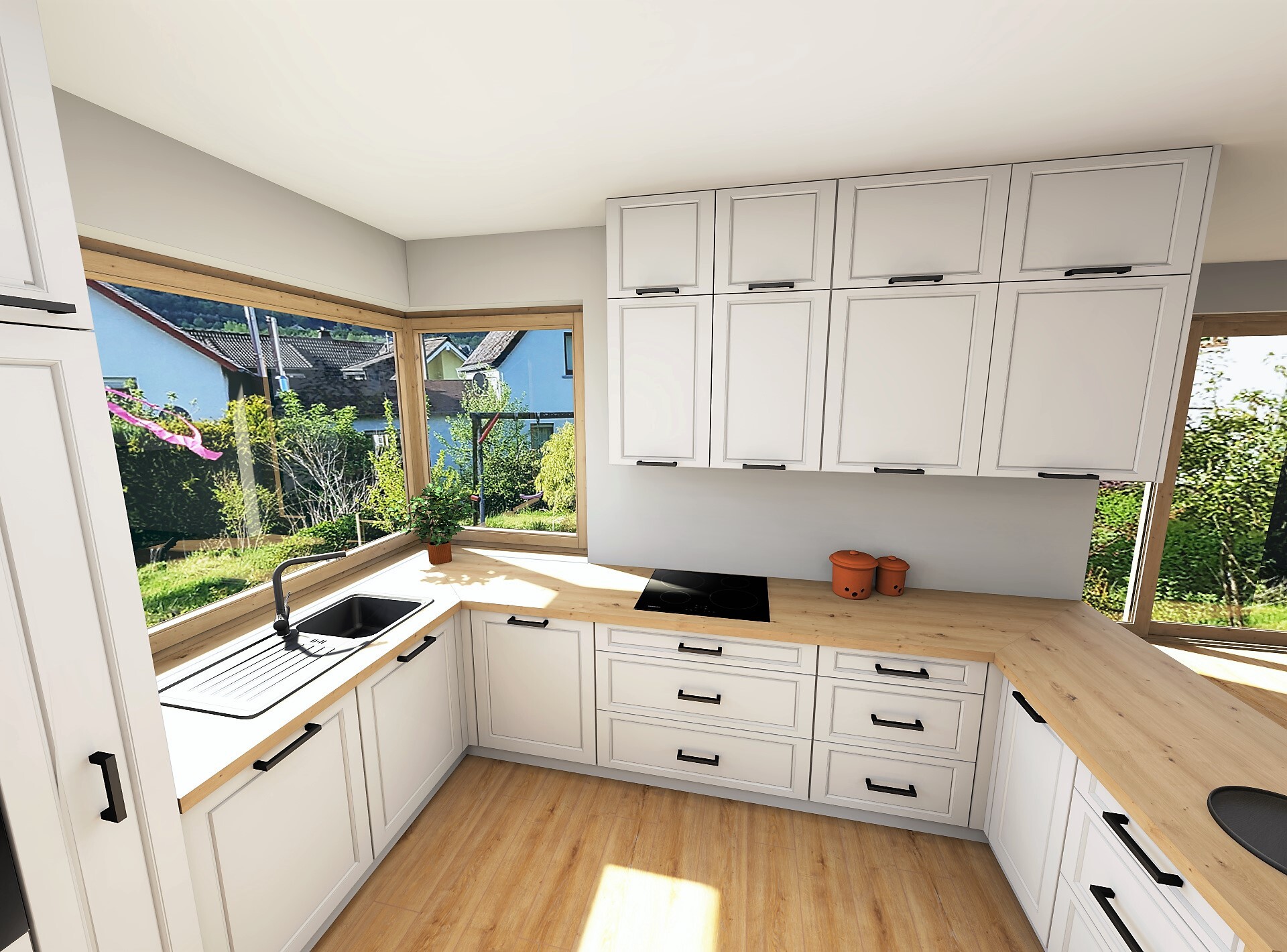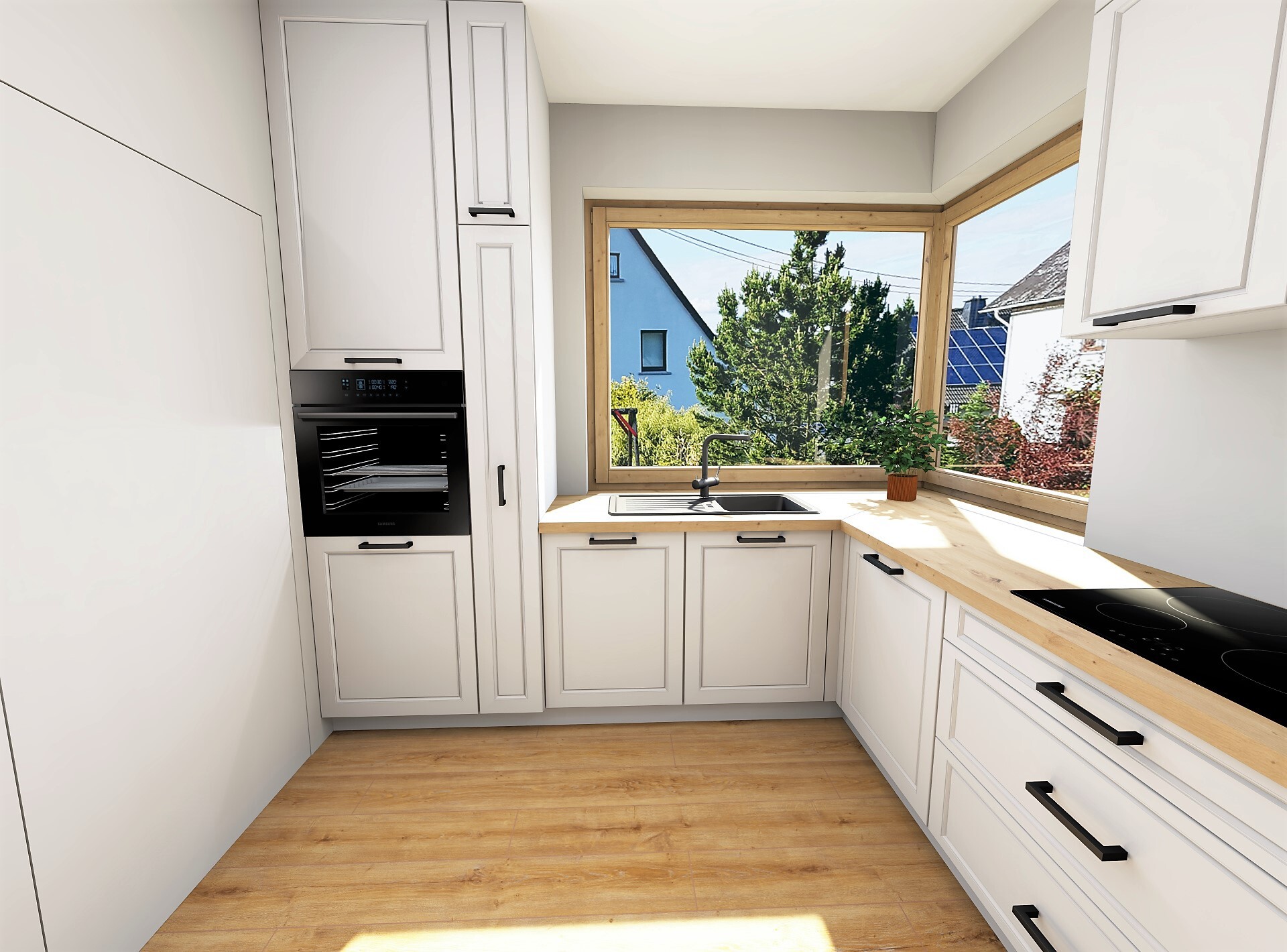 Wizualizacje pozwalają nam wyłapać ewentualne kolizje szafek, błędy ergonomiczne czy niewygodne ustawienia sprzętów.